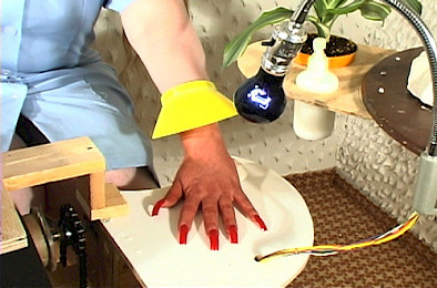 In one room, Chinese women dressed in viridian robes reach through portals in order to massage Mexican woman working in a lettuce field in California. Meanwhile, at a rubber plantation in India, trees are tapped for their milky latex. A woman's abundant breasts and cheeks become pink when they are squeezed by compressing walls ;. “blush,” a powdery substance that references both a physical sensation and a makeup product, falls off The blush, lettuce, and rubber latex are all mixed together to create a magical object The. entire production is managed by Bunny Glamazon and Trixxter Bombshell, a Buddha-like woman on a turntable, who gives directions via telekinesis The final art object produced by this collaboration will never be physically present ;. it will ultimately be stored in an offshore safe. (“Squeeze”, Mika Rottenberg)